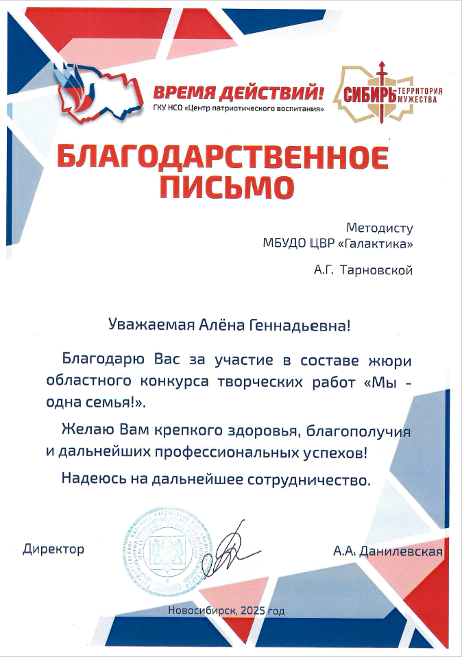 Благодарственное письмо ГКУ НСО "Центр патриотического воспитания"_2025